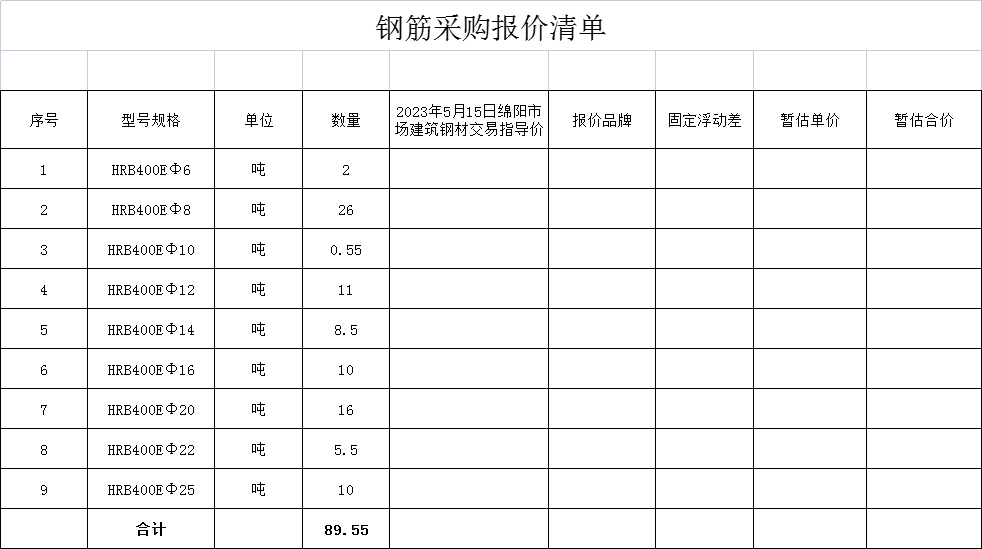 附件:鋼筋采購報(bào)價(jià)清單